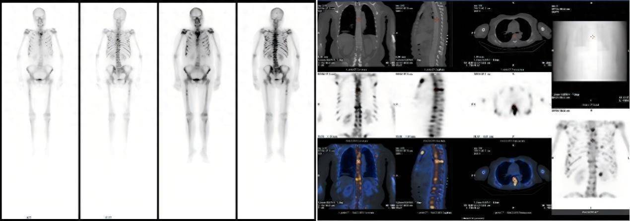 患者因不明原因发热、剧烈骨痛伴体重骤降前来就诊。入院后,全腹及胸部CT未见明显异常,但血常规提示白细胞、淋巴细胞、血小板及红细胞计数均显著降低。为进一步探明病因,临床医生安排了全身骨扫描(SPECT/CT),结果显示全身多处骨骼放射性浓聚,初步怀疑为肿瘤骨转移,其诊疗方向指向实体肿瘤,但其CT却未见明显病灶,诊断陷入了困境。临床医生随即安排可以全身扫描尤其对肿瘤病变尤为敏感的PET-CT检查。